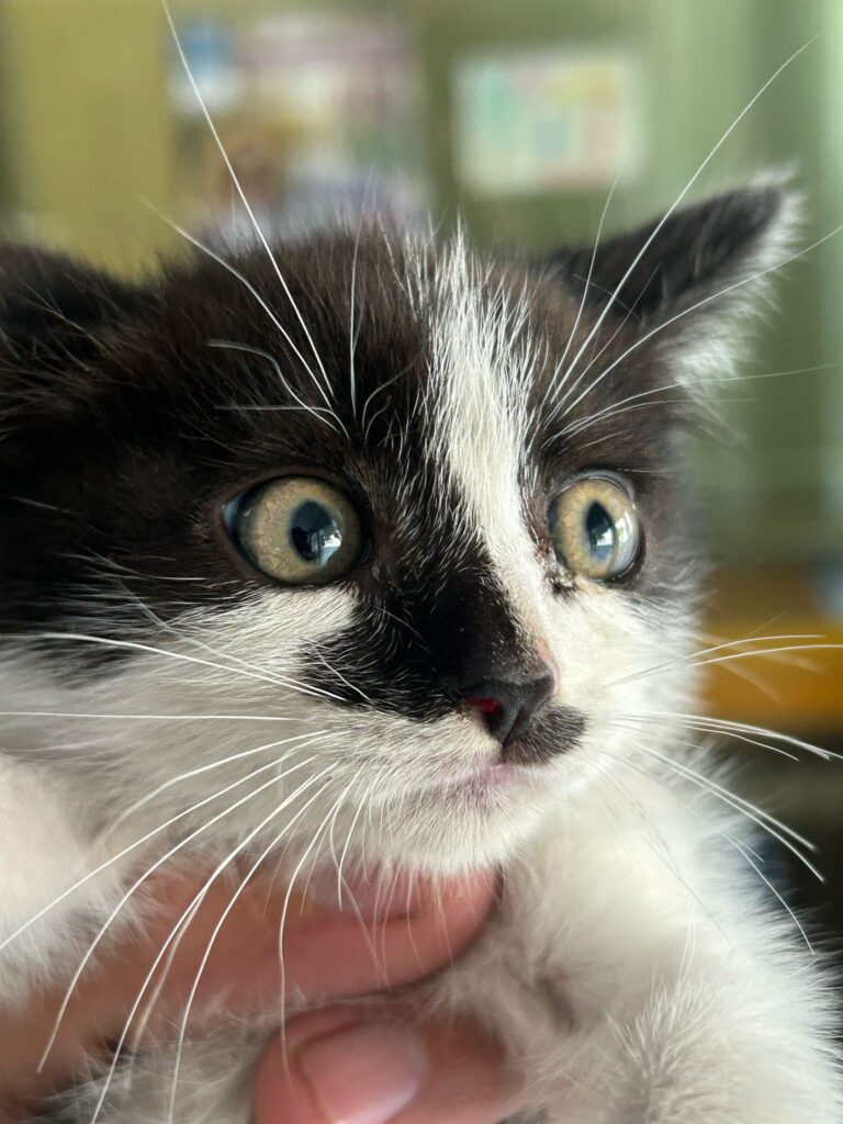 Descripción: GATO COMUN EUROPEO CON PELAJE NEGRO Y BLANCO.