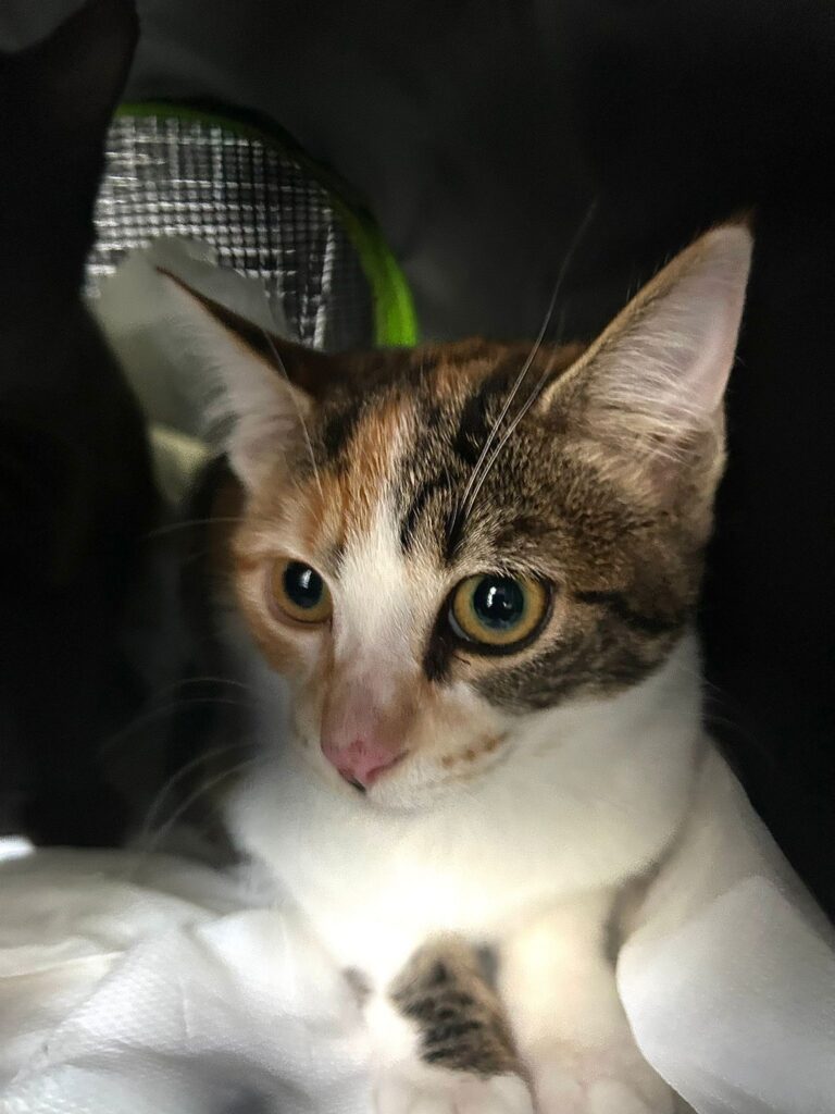 Descripción: GATO COMUN EUROPEO CON PELAJE TRICOLOR.