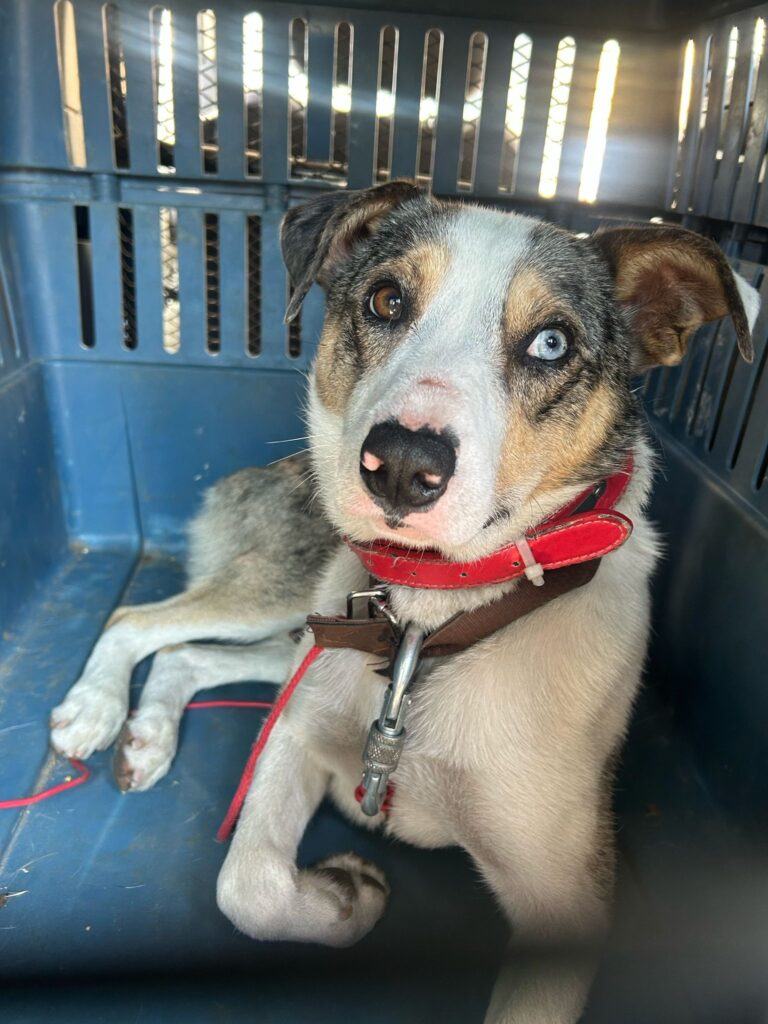 Descripción: PERRO MESTIZO TRICOLOR DE TALLA MEDIA, SOCIABLE.