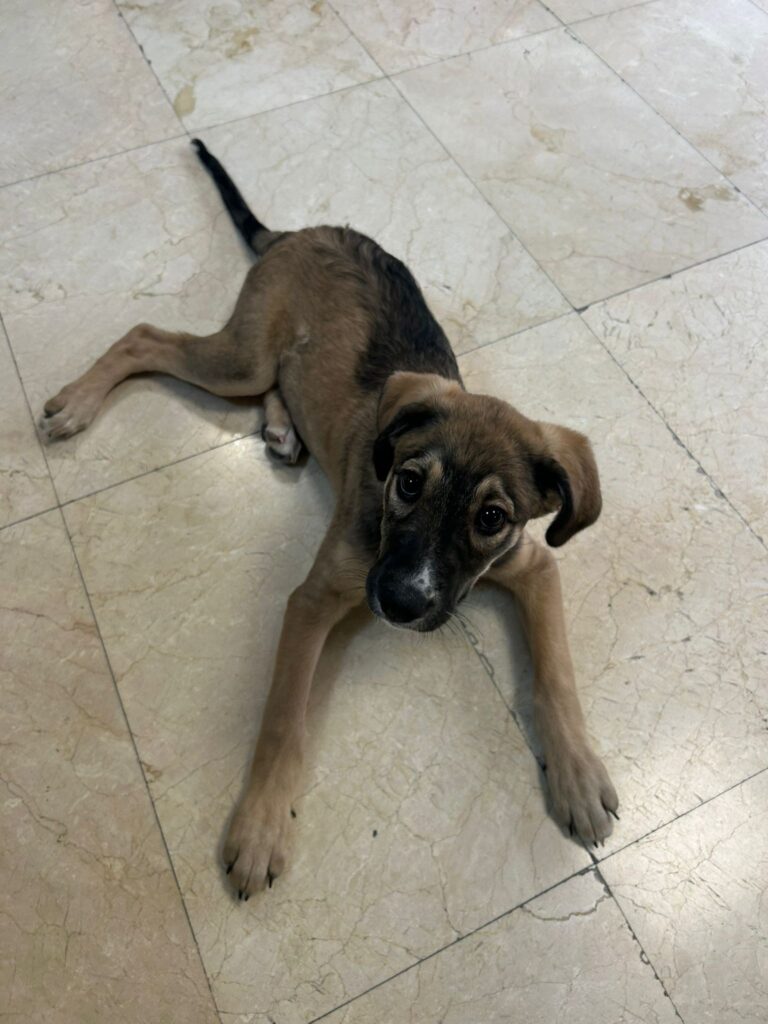 Descripción: CACHORRITA MESTIZA DE COLOR MARRON OSCURO.